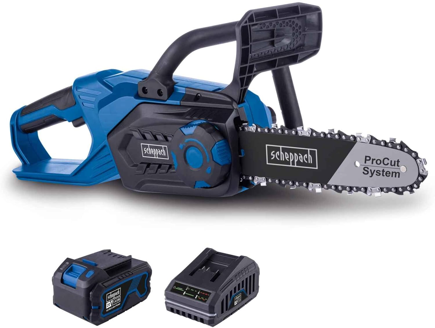 - Vezeték nélküli működés a Scheppach IXES 20 voltos sorozatával – a rendszercsalád összes akkumulátora és töltője kombinálható az akkus láncfűrészhez.