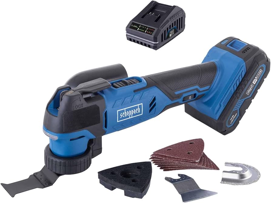 - A Scheppach IXES 20 voltos sorozat része: A rendszersorozat összes akkumulátora és töltője kombinálható a multifunkciós szerszámmal.