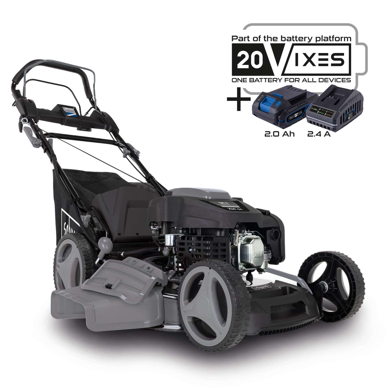53 cm-es vágásszélességével a Scheppach PML530-2253E egy hibrid indítású benzinmotoros fűnyíró, amely ideális nagy kertekbe, akár 1800 m²-es gyepfelülettel. A kerékhajtásnak és az elektromos indításnak köszönhetően a füvet gyakorlatilag magától nyírja. Az extra széles vágásszélesség időt takarít meg, a robusztus, 65 literes szövetből készült fűgyűjtő pedig csökkenti az ürítés miatti megállások számát. A mulcsozó funkció, a 7 pozíciós vágási magasságállítás és az integrált tisztítófunkció optimális gyepápolást biztosít.