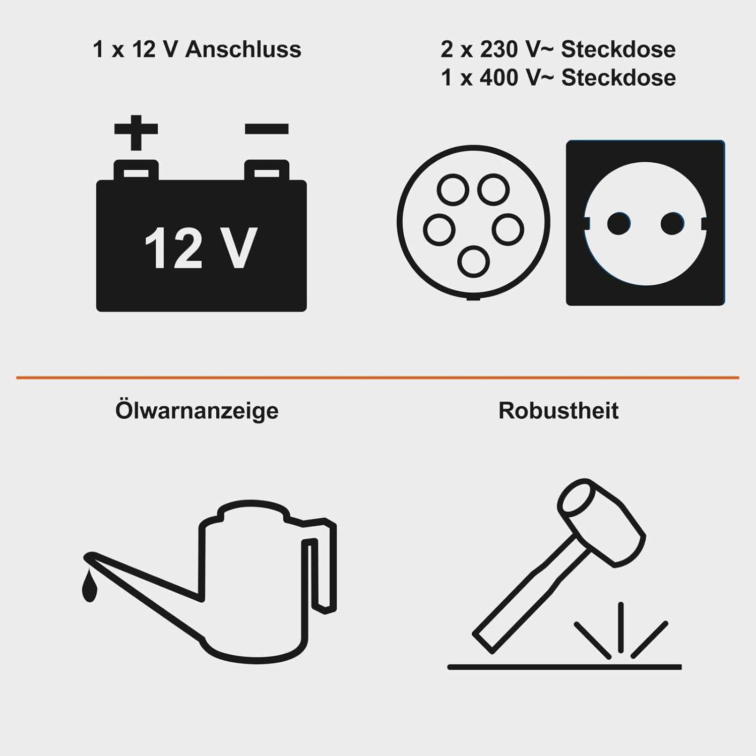 • Egy 400 V-os csatlakozó, két 230 V-os csatlakozó és egy 12 V-os egyenáramú csatlakozó a maximális rugalmasság érdekében