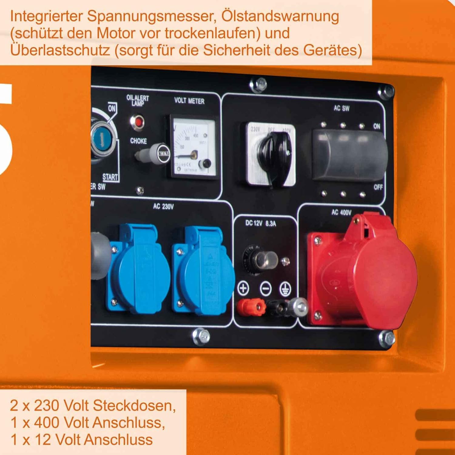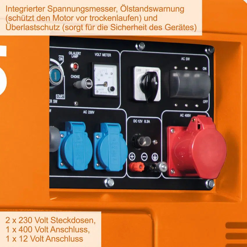 Ixes /Scheppach/IX-SGD-5500D Diesel Aggregátor-áramfejlesztő-elektromos indítás, 7,7 LE, 5000 W, 2 x 230 V, 1 x 400 V aljzat, 16 literes tartály, AVR rendszer