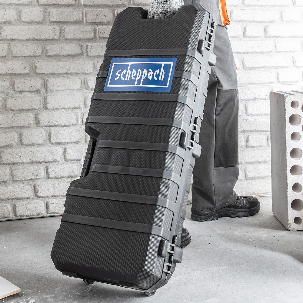 A bontókalapács tartozéka a praktikus, masszív, kerekekkel ellátott koffer, és alaptartozéka 1-1 db lapos és hegyes végű vésőszár is.
