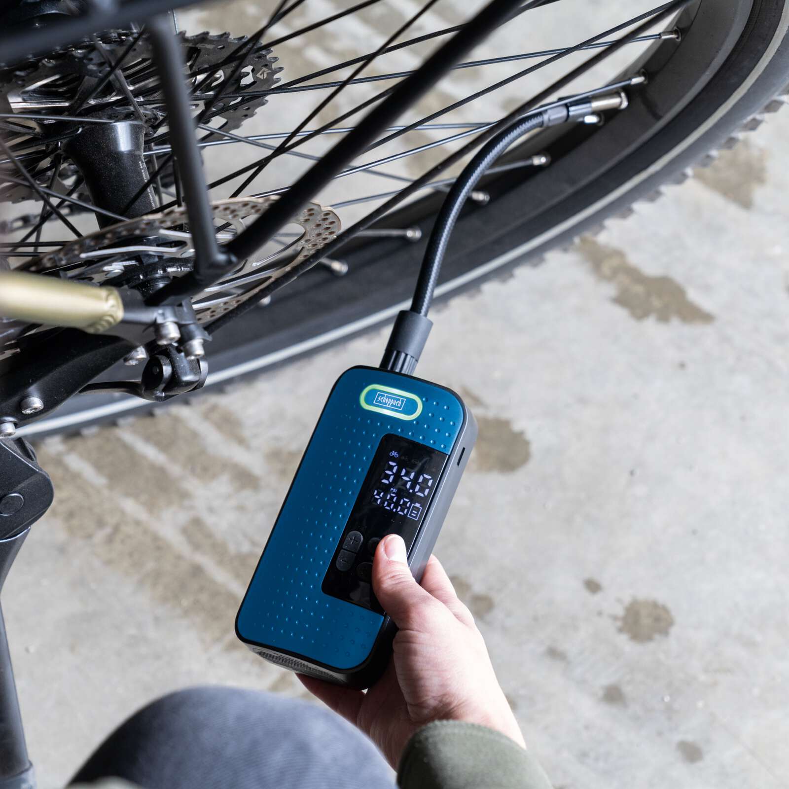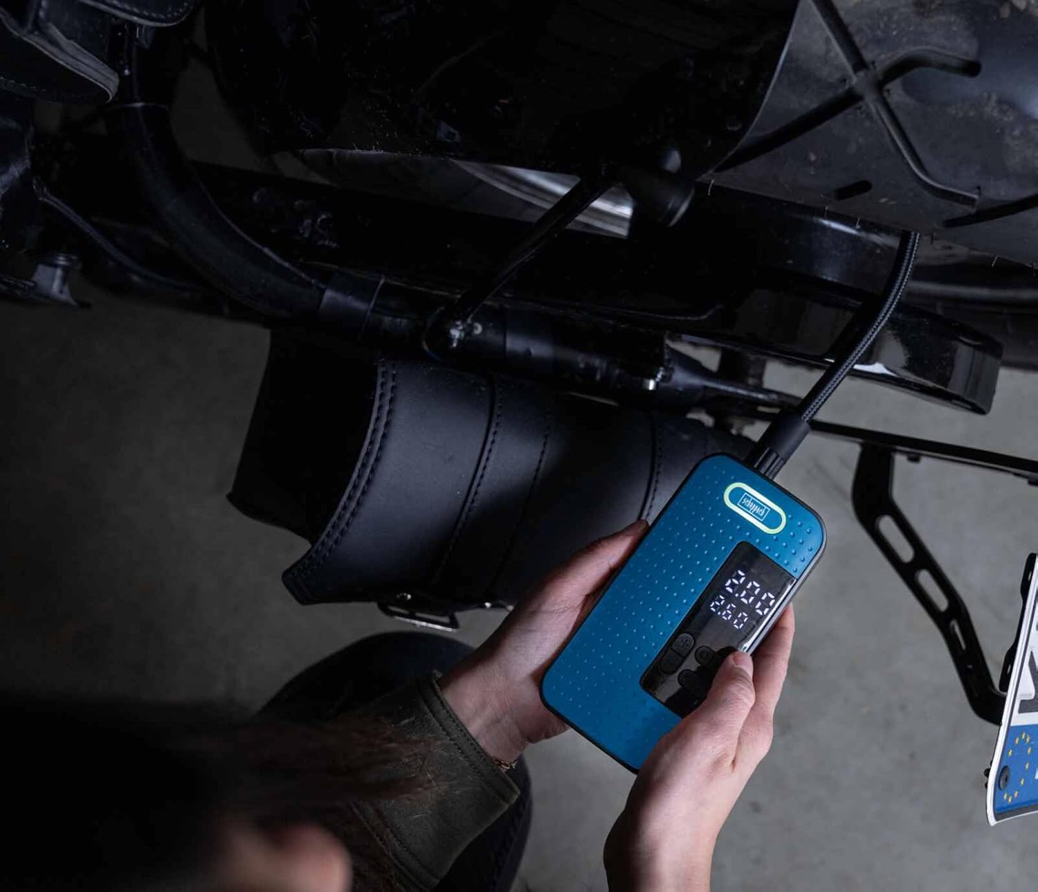 - Kompakt, akkus kézi kompresszor útközbeni használatra – ideális autó- vagy kerékpárabroncsok, valamint játékok és sporteszközök felfújásához