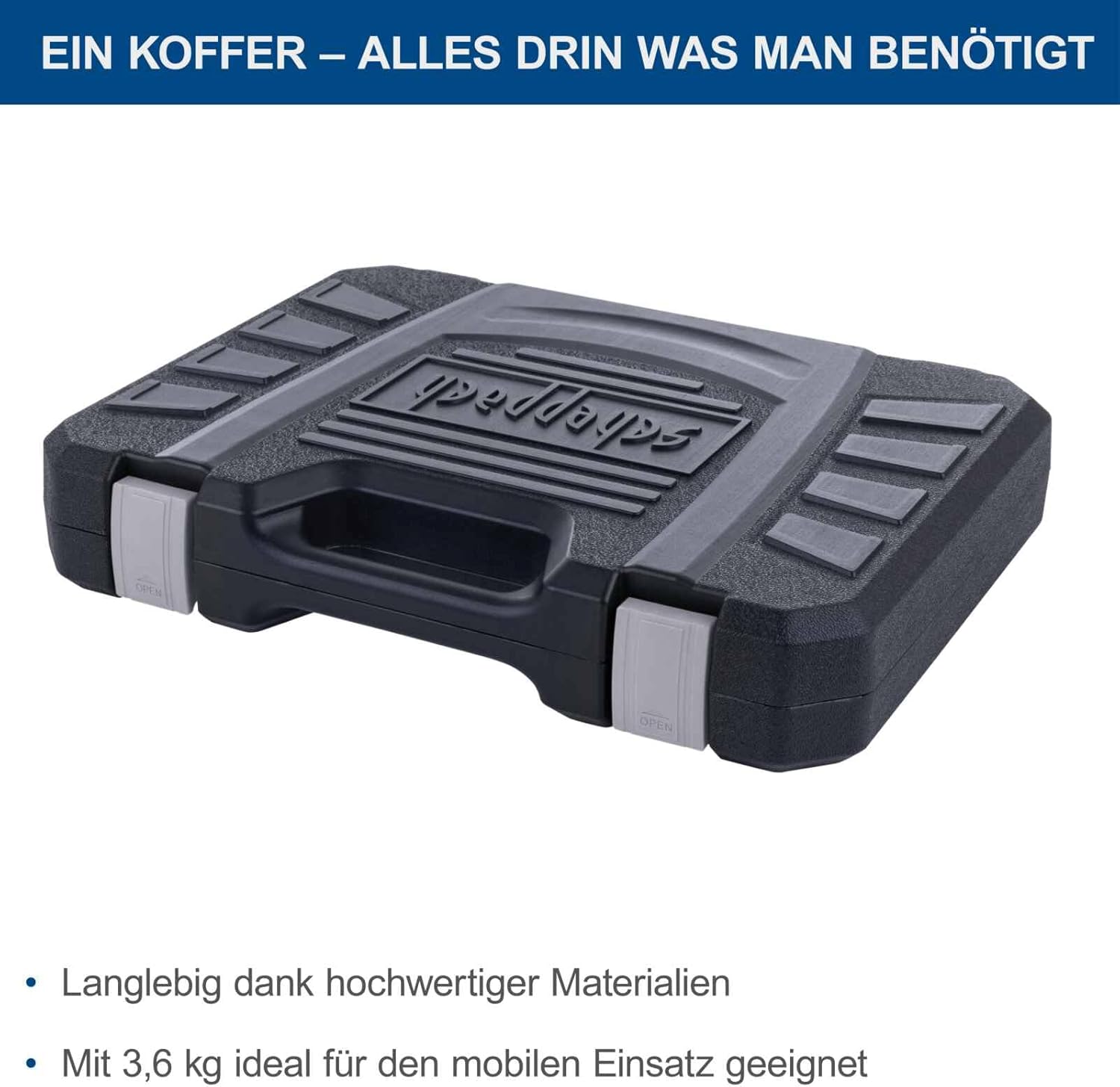• A szerszámok egyszerű szállítása és kényelmes tárolása robusztus műanyag kofferben